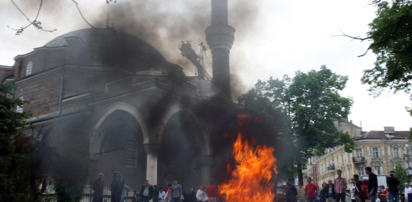 Violent attack against Muslim worshippers outside the Banya Bashi mosque in Sofia city centre, May 2011. Credit: Juliana Nikolova